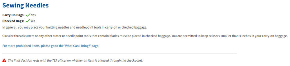 I can only find specific TSA rules regarding knitting needles. Yes in both your carry on and. Web According to TSA sewing needles are allowed in carry-on and checked bags.